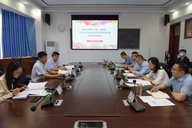 5月5日上午,太阳成集团tyc234cc第十三届“挑战杯”山东省大学生创业计划竞赛终审决赛重点项目推进会在西校区10#A408召开。校党委常委、副校长赵明吉,校团委书记李鹏、副书记解方文,太阳成城集团tyc234cc、物理科学与信息工程学院党政领导,重点培育项目指导老师和学生团队成员共20余人参加会议。
