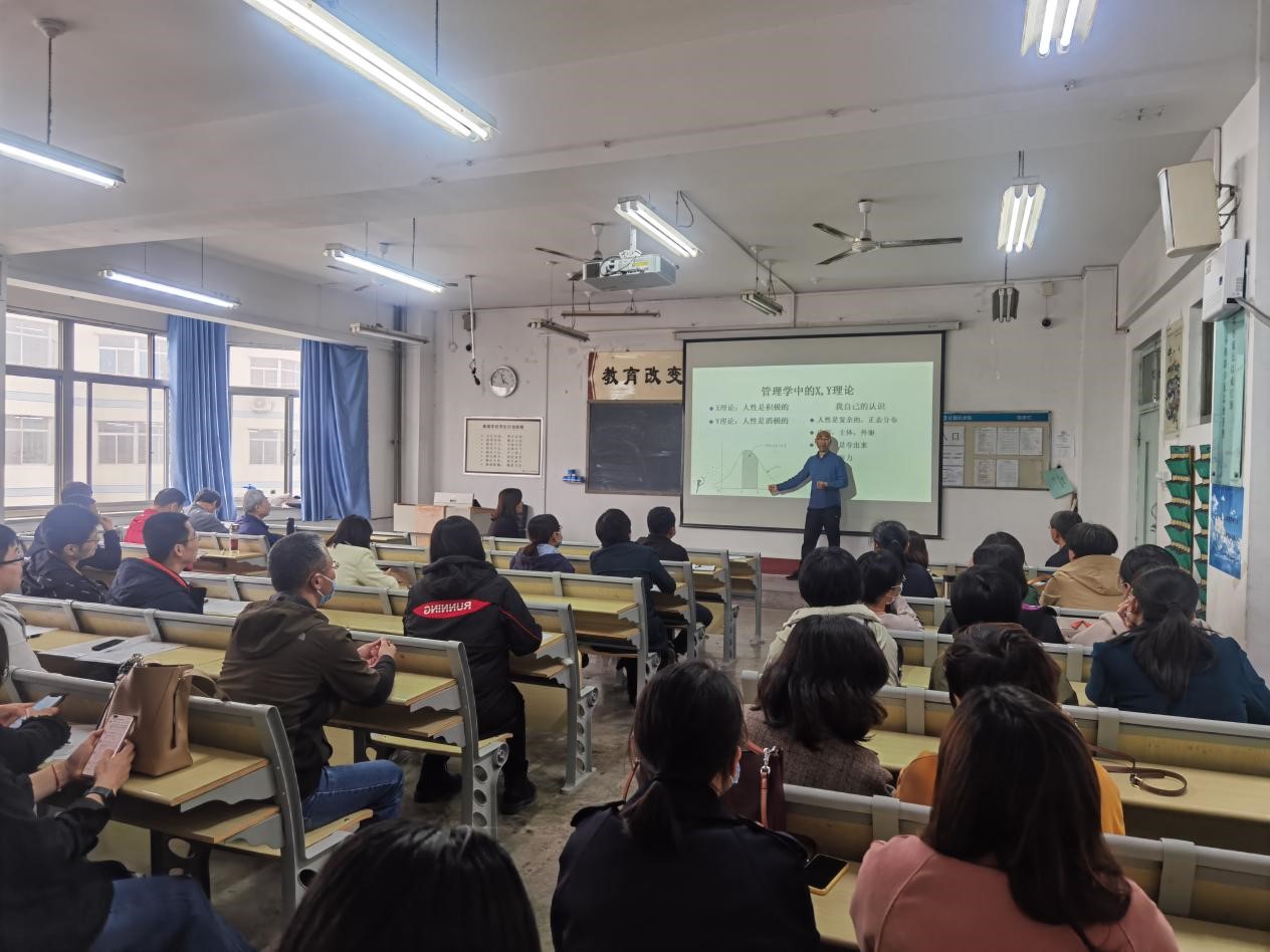 孟之天结合自身从教经历和教学实际,围绕高教产业的属性、学生思想特点、教师课堂教学三个方面进行了颇为生动的分享。他提到,高校教师要扮演好服务者和监督者的角色,就必须从学生思想特点和实际需要出发,换位思考,以包容的心态理解学生的局限性,通过制造学习需求,帮助学生掌握学习的方法和技巧,以实现就业或考研的目标需求。同时他运用管理学中的XY理论,生动形象的展示了如何通过制度设计,运用激励机制不断激发学生主动学习的内驱力。孟之天提出,要把握住课堂教学的机会,通过营造互动学习氛围、鼓励学生组团学习、用简单方法解答困难问题等几个实例小技巧,为老师们进一步改进课堂教学,明确自身授课风格特色提供了思考。