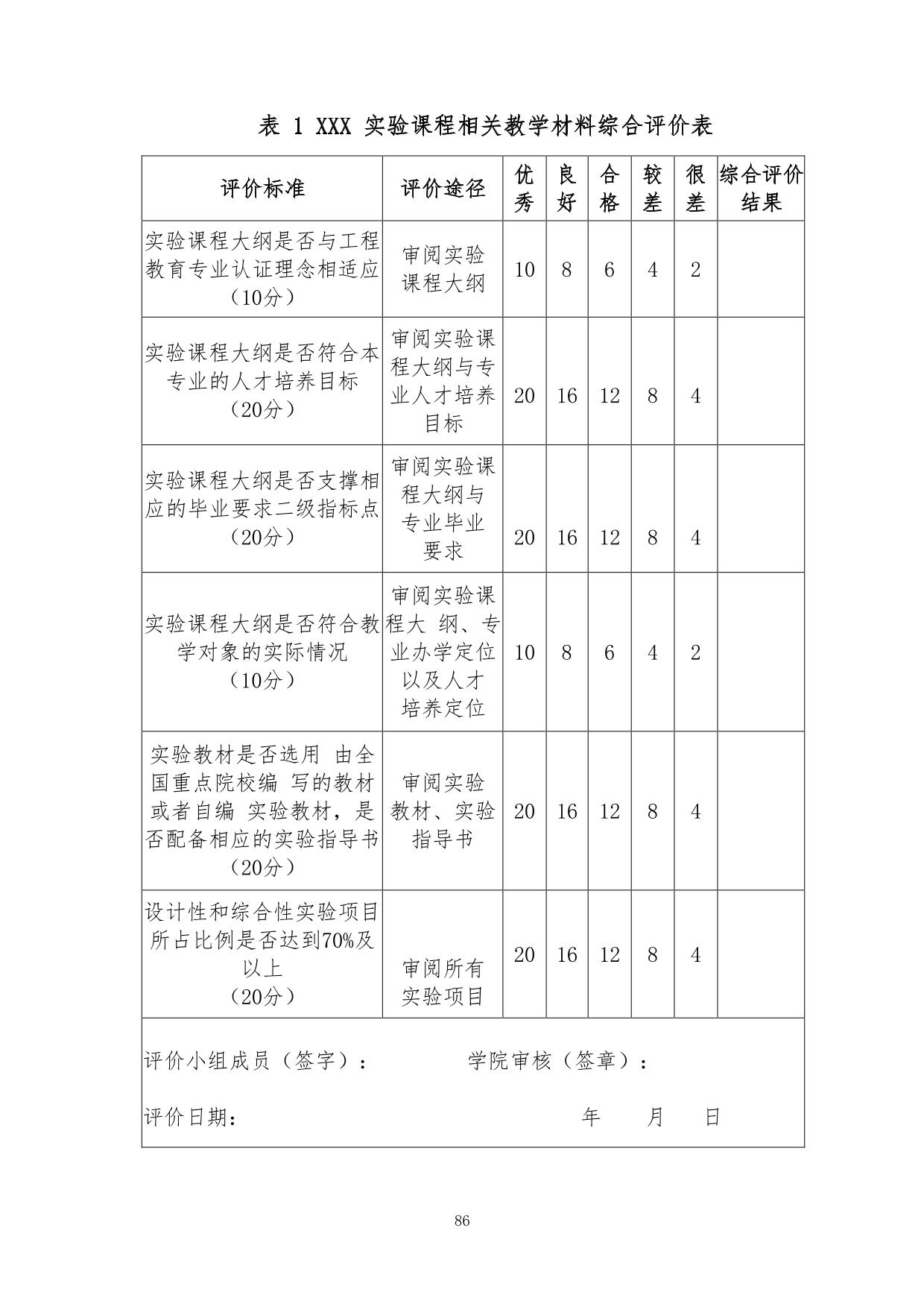 1、实验课程大纲。实验课程负责人要根据学校及学院的相关要求,制订出与工程教育专业认证理念相适应的实验课程大纲。大纲应符合本专业的人才培养目标,能够支撑相应的毕业要求二级指标点,并符合教学对象的实际情况。