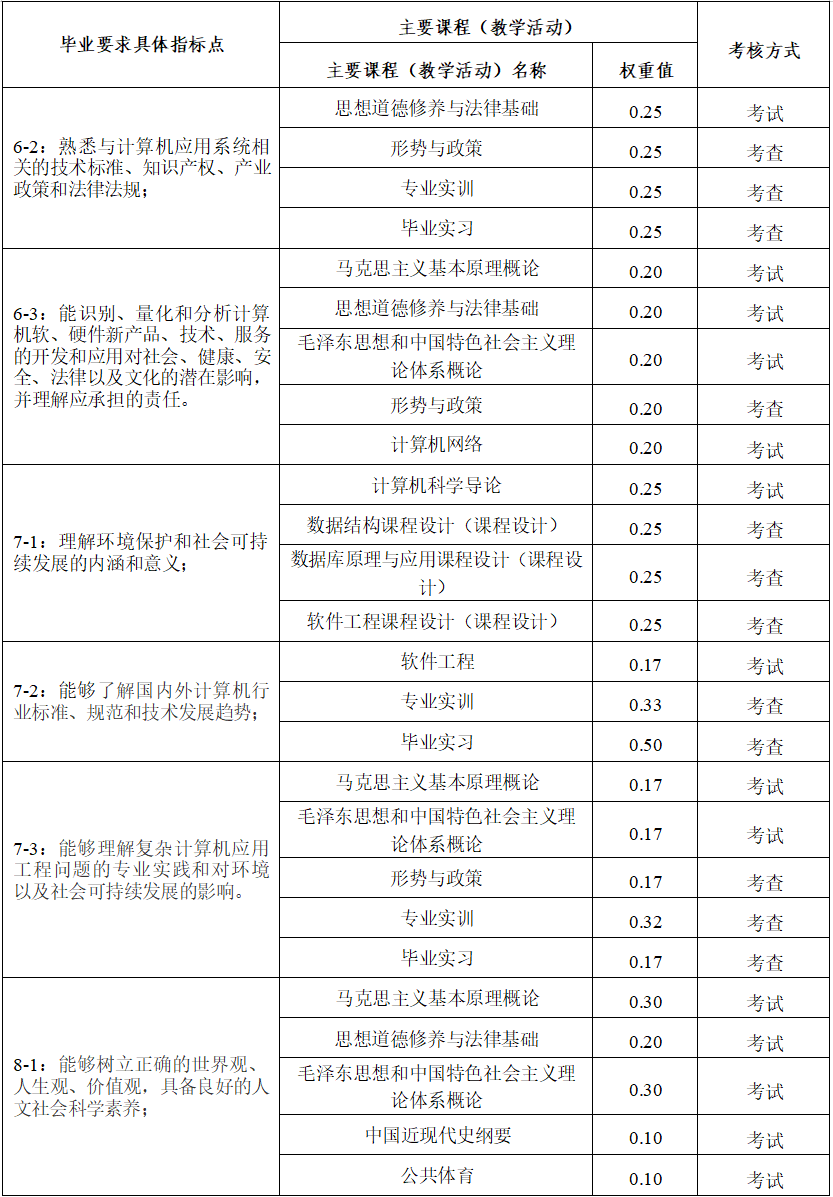 六、主要课程(教学活动)与毕业要求对应矩阵(见表 3