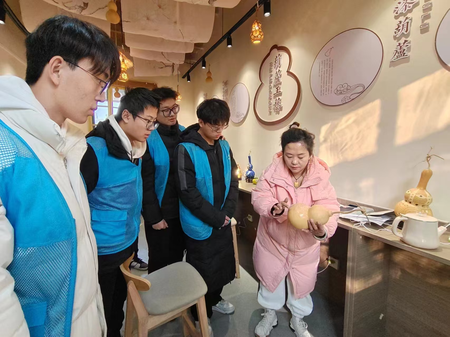 实践队首先到达东昌府区木版年画博物馆,通过参观各式各样的木版年画,欣赏年画艺术的杰作,沉浸在艺术的浓厚氛围中,亲身感受木版年画背后的故事与智慧,深刻领悟传统文化的丰厚底蕴和独特魅力。接下来,实践队前往聊城地委专署旧址,进行葫芦艺术作品的创作体验。葫芦艺术作为非物质文化遗产之一,以其别具匠心的风采吸引了众人的目光。实践队选择了彩绘与烙画两种工艺进行创作,亲身感受传统工艺的魅力。彩绘技术使葫芦变得斑斓多彩,烙画工艺则通过高温工具在葫芦表皮上勾勒出栩栩如生的图案,赋予葫芦凹凸有致的美感与立体质感。两者的巧妙融合既保留了葫芦的天然纹理,又为其注入了全新的艺术灵魂。实践临近结束,实践队员们纷纷表示,通过此次社会实践活动,深刻了解到了非遗文化的悠久历史和源远流长,同时也认识到了保护和传承珍贵文化遗产的重要性。通过亲身体验和创作,实践队员们得以更加深入地了解民间艺术的内涵与价值,坚定为非遗文化的传承和发展贡献力量的决心。