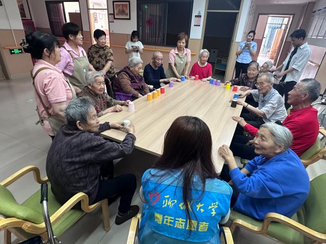 活动伊始,志愿者们主动与老人们亲切交流,询问他们的健康状况和生活需求,并热情地为老人打扫房间、整理内务。在温馨的互动中,志愿者们分享着充实而多彩的大学生活,青春洋溢的故事让现场充满活力。老人们也被感染,纷纷讲述起年轻时拼搏奋斗的岁月,每一个故事都镌刻着独特的时代印记。随后,志愿者们分工协作,精心设计了形式多样的陪伴活动。有的陪老人对弈棋局,在楚河汉界间展开智慧的较量;有的和老人一起制作手工艺品,在一针一线中传递温暖。欢声笑语间,老人们的脸上绽放出灿烂的笑容,整个养老服务中心洋溢着温馨祥和的氛围。活动结束后,志愿者们纷纷表示,今后将继续参与此类公益活动,用实际行动传递爱心,给予老人们更多陪伴与关爱。