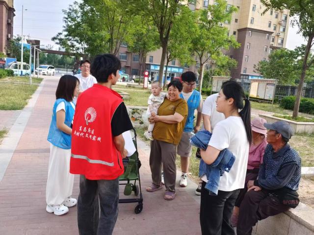 活动伊始,防溺水小队手持精心设计的宣传传单,在人流密集处主动采访过往居民。调研发现,绝大多数市民虽知晓溺水风险的严重性,却对“溺水后如何自救”的关键知识掌握不足。随后,队员们来到幸福社区,采访了在这附近的居民,并向他们分发了有关防溺水的宣传材料,针对“手脚抽筋该怎么摆姿势”“呛水后如何调整呼吸”等普遍模糊的自救要点,队员们结合科学救援方法,现场演示“仰漂控水”“肢体放松保持浮力”等实用技巧,用通俗易懂的讲解填补了居民的知识盲区, 不少居民感慨到这次的科普让他们真正学会了溺水时的正确做法,家长们接过传单时那认真折叠收进包里的动作,更是让队员们明白:当安全知识从“纸上的提醒”变成“心里的重视”,这场与生命安全的温柔对话,早已在每个人心中种下了守护的种子。