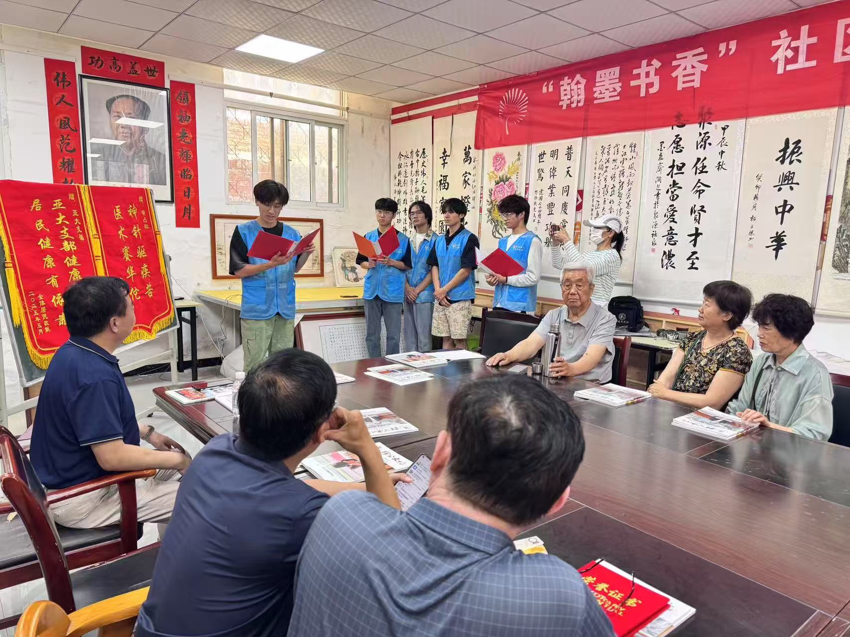 为深入学习贯彻习近平新时代中国特色社会主义思想,推动党的创新理论在基层落地生根,7月10日,太阳成集团tyc234cc“习语润心,青春同行”志愿服务队,赴东昌府区聚源社区开展“弘扬时代新思,擘画强国宏图”主题社会实践活动。