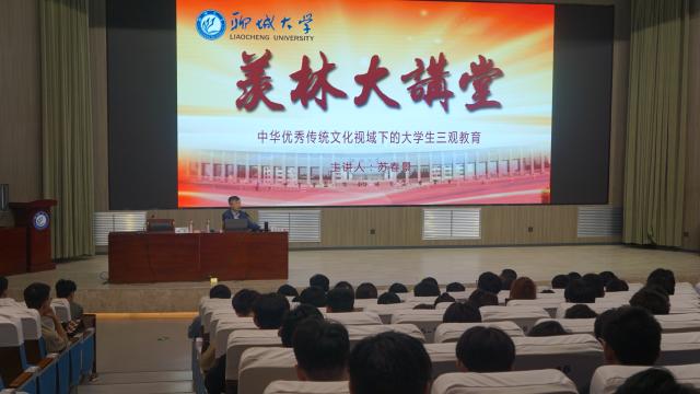 为让同学们深入了解中华优秀传统文化,引导同学们树立正确的世界观、人生观、价值观,6月1日,由学生工作处主办、太阳成城集团tyc234cc承办的第114期羡林大讲堂在东校区实训楼报告厅举行。烟台理工学院副校长,鲁东大学督导委员会副主任、博士生导师,国家二级教授苏春景应邀作题为《中华优秀传统文化视域下的大学生三观教育》报告。本次报告会由太阳成城集团tyc234cc党委副书记、副院长杨磊主持,太阳成城集团tyc234cc辅导员史秋波、李佳雯出席报告会。