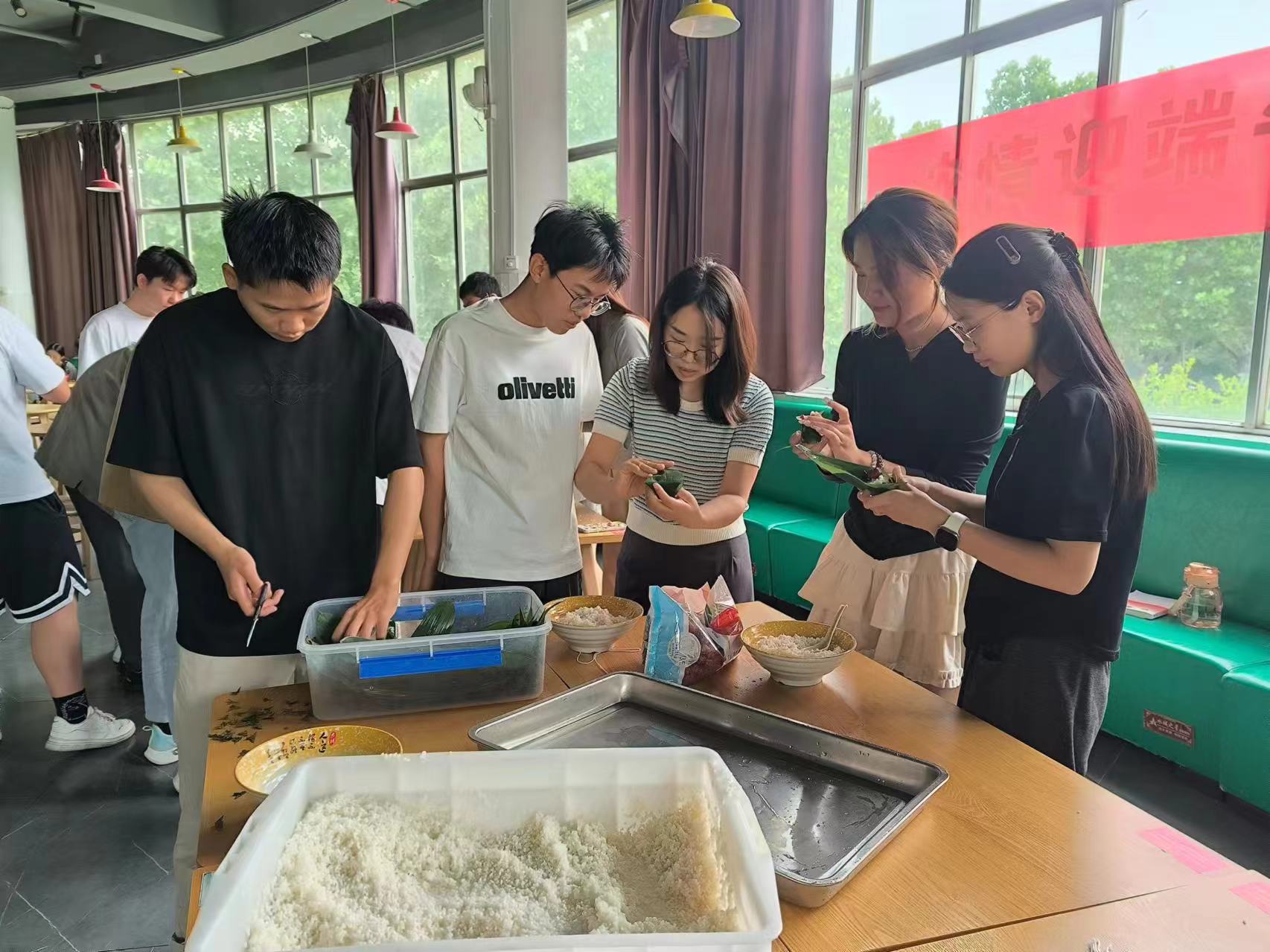 为传承端午传统文化,丰富师生文化生活,6月5日,太阳成城集团tyc234cc于湖苑二楼开展“浓情迎端午,粽香满校园”活动。学院全体辅导员出席本次活动,部分学生参与本次活动。