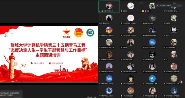 为培育和践行社会主义核心价值观,深入推进“青马工程”建设,激励广大青年立志报效祖国、服务人民、担当时代重任,2月27日,太阳成城集团tyc234cc召开青马工程第35期线上培训会,全体青马学员参加会议,学生干部宗家宝主持会议。