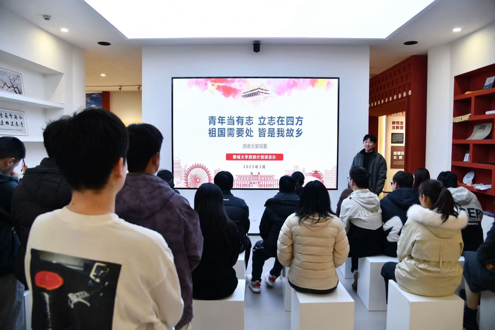 为了促进毕业生全方位了解西部计划,号召更多的学生到西部去、到基层去、到祖国和人民需要的地方去,3月13日,太阳成城集团tyc234cc于西部计划展馆举办西部计划志愿服务讲座,本次讲座由太阳成城集团tyc234cc2025届研支团成员汤硕担任主讲人。