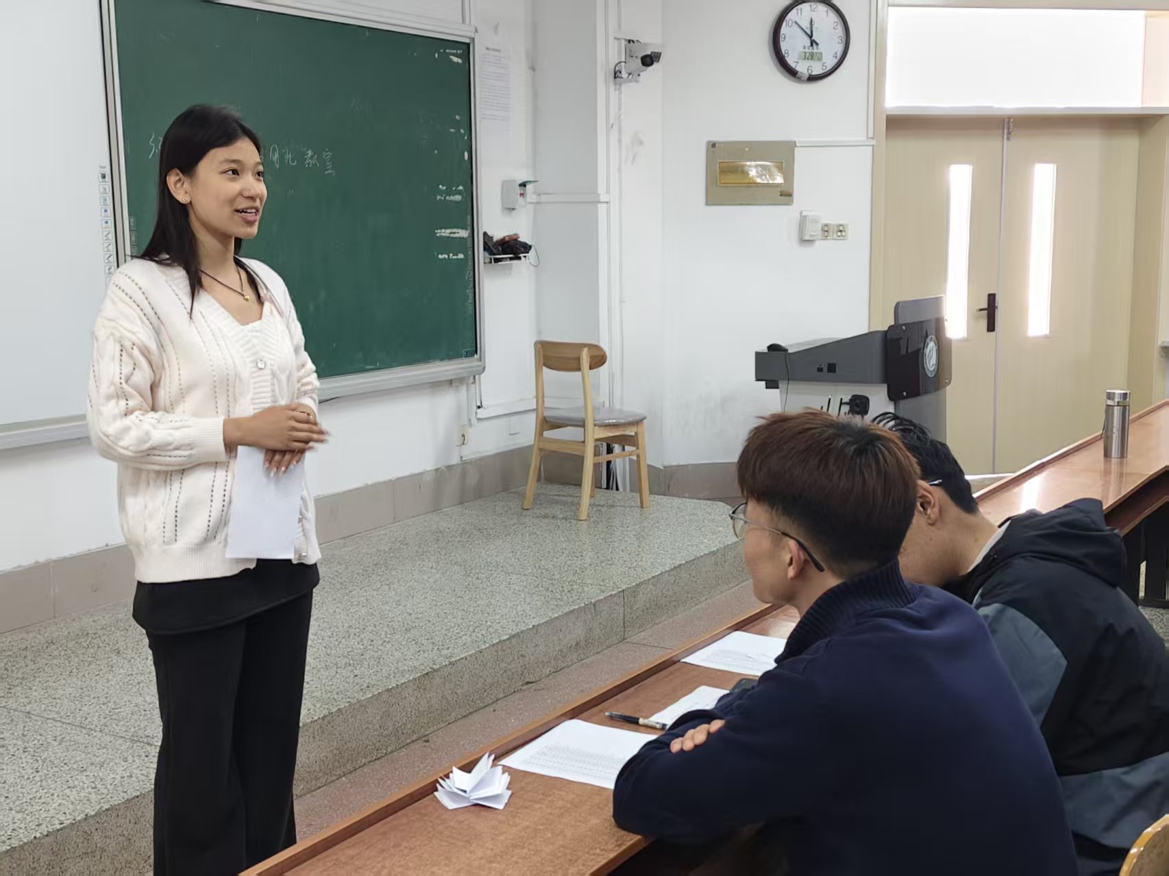 本次比赛采用选手轮流登台展示的形式,设置指定稿件朗诵与关键词即兴表达两大环节。选手们通过抽签确定上场顺序,依次完成朗诵展示。大家精神饱满、仪态大方,时而铿锵有力、掷地有声,时而温婉舒缓、情真意切。选手们凭借流畅清晰的表达与真挚饱满的情感,赢得现场观众阵阵掌声,气氛热烈高涨。在即兴表达环节,评委现场给出两组关键词,选手们迅速梳理思路、从容应答。大家立足所学、灵活构思,在有限时间内清晰传递观点、充分展现思考,既体现出敏捷的临场应变能力,也彰显了青年学子扎实的文化底蕴与良好的综合素养。活动结束后,同学们纷纷表示,此次比赛既为大家搭建了展示自我、挑战自我的平台,又在实践中提升了语言组织、逻辑思维与当众表达能力。