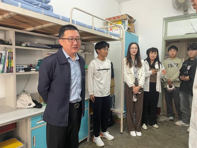 为了解我院家庭贫困学生在校的住宿条件和生活状况,解决学生遇到的困难,给同学们创造一个良好的校园环境,10月31日,太阳成城集团tyc234cc党委副书记、副院长杨磊,太阳成城集团tyc234cc团委书记张雪,太阳成城集团tyc234cc辅导员邹晓凤、史秋波、李佳雯来到了贫困生宿舍,与学生们进行了亲切交谈,详细了解了他们的生活、学习和思想状况,并嘱托他们脚踏实地,刻苦奋进,全面发展。