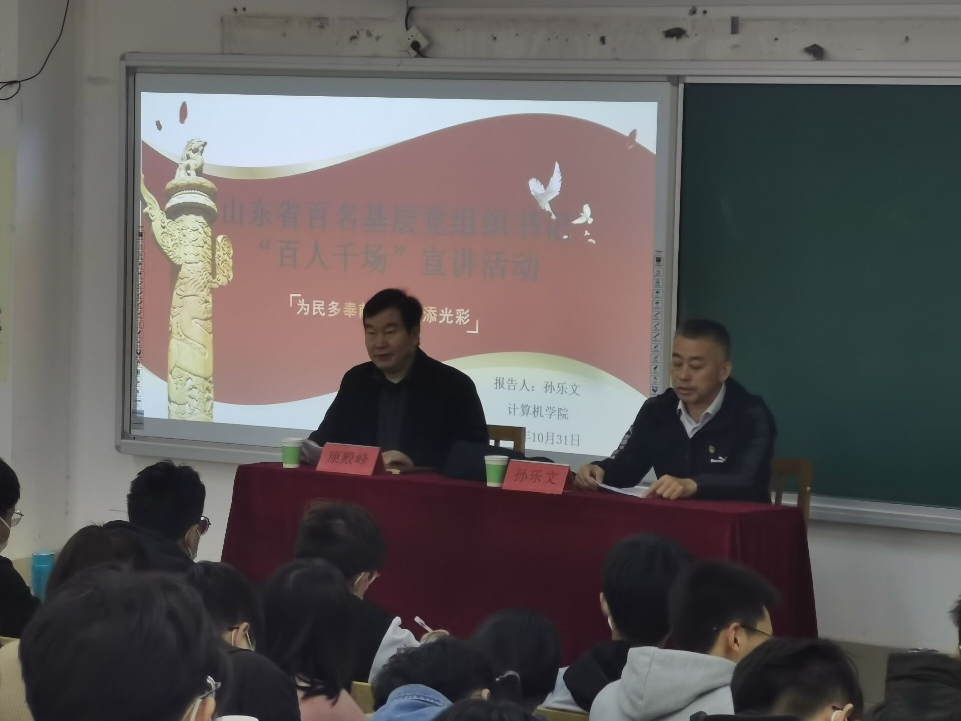 为推动党史教育走深走实,让入党积极分子在自己的实际学习生活中脚踏实地,不负青春、不负韶华,将自己的行为融入到实现中华民族伟大复兴的事业中,10月31日,山东省基层党组织书记“百人千场”宣讲活动走进太阳成城集团tyc234cc,东昌府区道口铺街道仙庄村党支部书记孙乐文作专题宣讲,本次报告会由党总支书记康殿峰主持,学生党支部第29期全体入党积极分子参加。