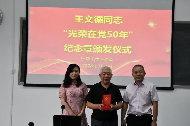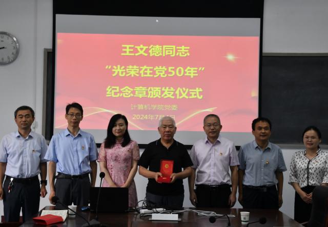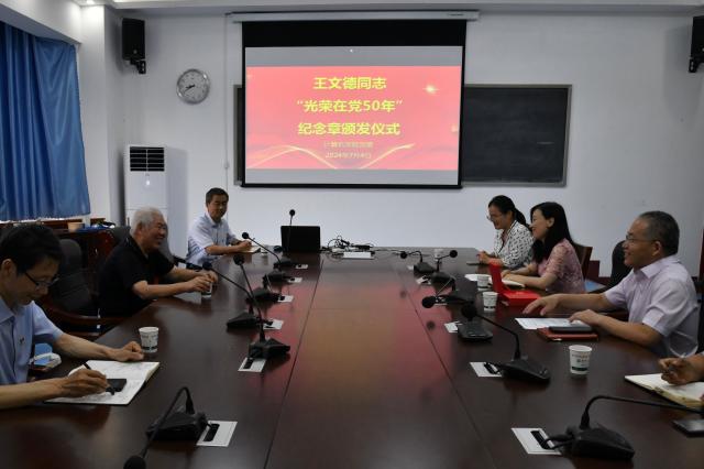 为庆祝中国共产党成立103周年,弘扬伟大建党精神,进一步增强广大党员的荣誉、归属感、使命感,7月4日上午,太阳成城集团tyc234cc举办王文德同志“光荣在党50年”纪念章颁发仪式。“光荣在党50年”老党员王文德同志、学院党委班子成员、党员代表参会活动,党委书记贾仰理主持。