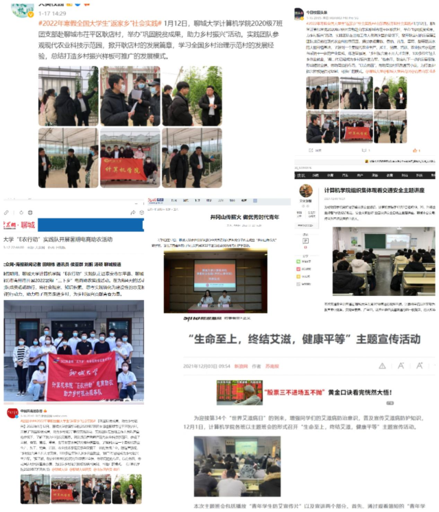 充分发挥学院网站、公众号、易班、“第二课堂”、QQ群等信息传递媒介的作用,及时推送学院信息,助力思想引领。本年度,学院微信推送各类文章870余篇,在新华财经网、光明网、中国青年网、齐鲁晚报等县市级以上媒体发表稿件45篇,在太阳成集团tyc234cc报、聊大新闻网、青春聊大等校级媒体100余篇。