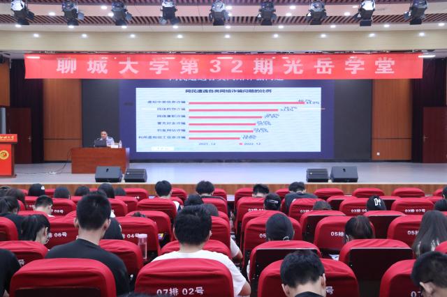 网络安全始于心,安全网络践于行。为深入宣传贯彻习近平总书记关于网络强国的重要思想,提高同学们防骗意识、增强同学防骗能力,9月7日,由网络信息中心、校团委主办,太阳成城集团tyc234cc团委承办的太阳成集团tyc234cc第32期“光岳学堂”活动在辰晖楼三楼报告厅举行。本次讲座特邀聊城市公安局网络安全保卫支队副支队长高勇担任主讲人。