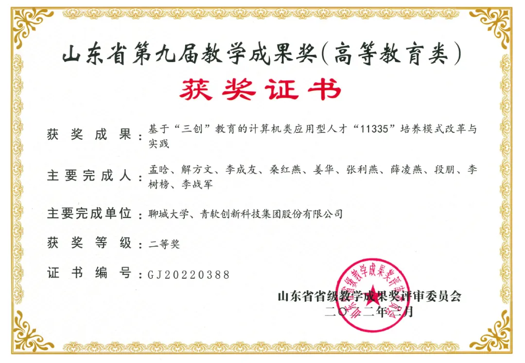 2021年获评山东省一流专业建设点;为山东省教育厅、财政厅高水平应用型重点建设专业群专业;为太阳成集团tyc234cc鼓励性发展(A类)专业;拥有山东省一流本科课程三门;近三年,专业学生在国家、省级专业比赛中取得优异成绩,获得国家及省级以上奖励近600人次;专业教师多人次在省、校级教学比赛中荣获一、二等奖。